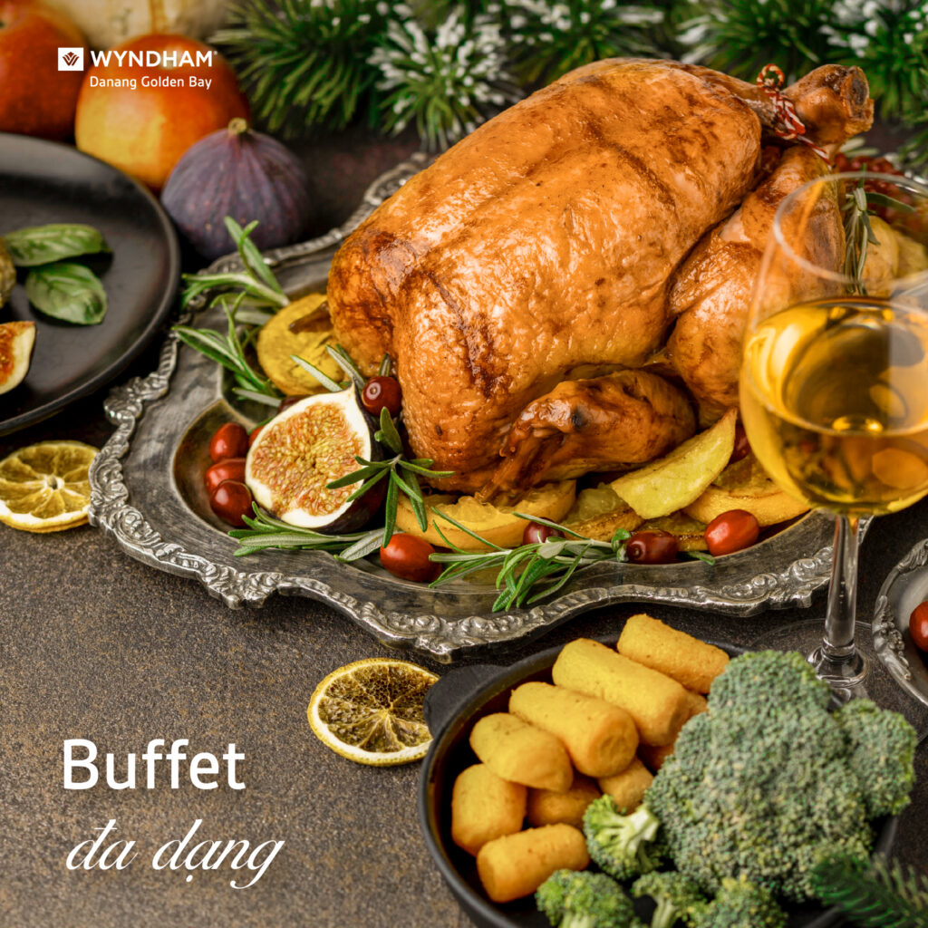 Một trong những trải nghiệm đáng mong chờ nhất mùa lễ hội tại Đà Nẵng là bữa tiệc giao thừa. Tối 31/12, Wyndham Danang Golden Bay giới thiệu New Year’s Buffet Dinner với hơn 80 món ăn quốc tế, hải sản, salad, quầy carving và tráng miệng chủ đề lễ hội.